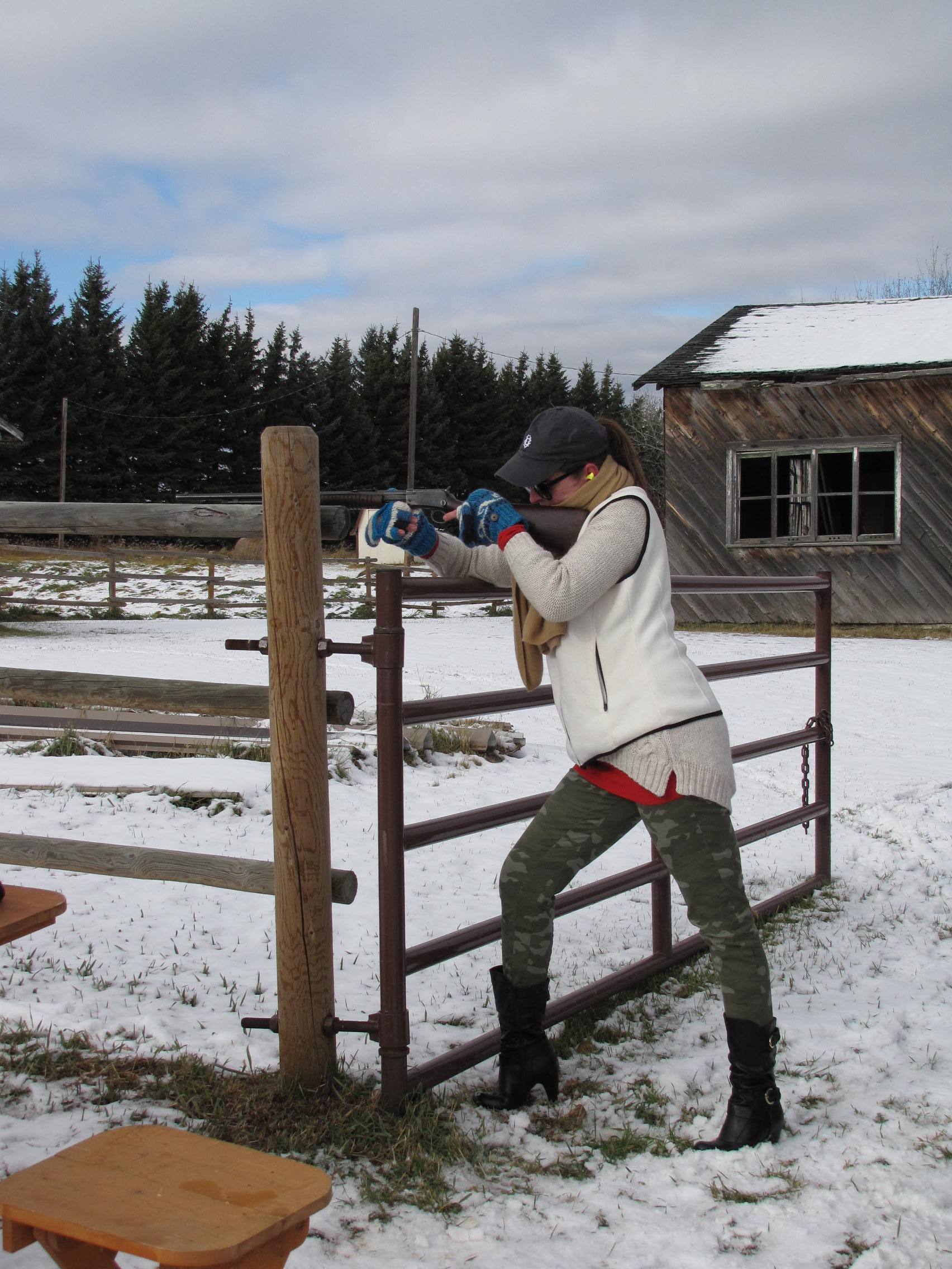 First, let me explain a few things. #1 – I was not expecting snow. #2 – I was not expecting to go shooting. Outside. With the winds howling across the plain. #3 – I am aware that big, fuzzy knit mittens are not appropriate for shooting accuracy. They were borrowed. I did not have gloves with me (see #s 1 & 2).